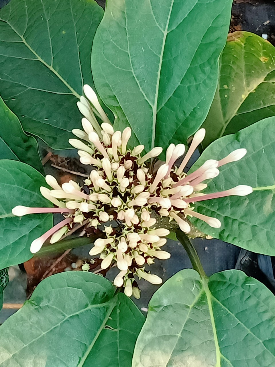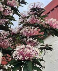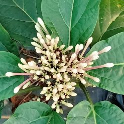 – Chùm Hoa Pháo Bông thường nằm ở đầu ngọn, hoa to màu trắng, bao gồm nhiều cái hoa hình kim nhỏ dài như những tia pháo bông. Cuống hoa có màu đỏ tía tô điểm thêm vẻ đẹp cho bông hoa có nét đặc sắc riêng. Khi hoa nở các cánh hoa nở xoè ở đầu tựa như 1 đoá pháo bông đang nổ toả ra không gian bên ngoài.