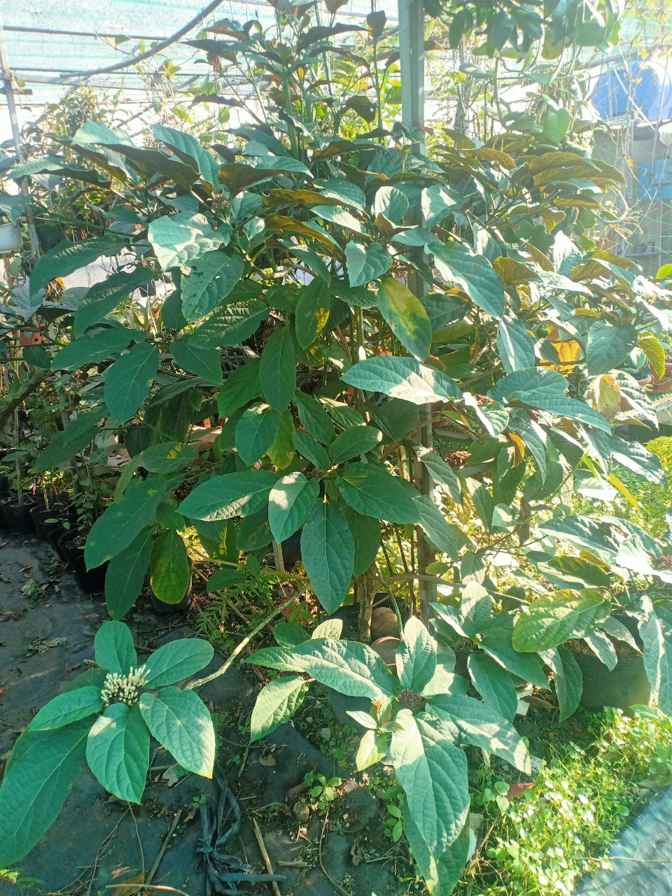 – Là cây thân gỗ, cành phân nhánh. Cây trồng lâu năm có thể cao tới 3m. Lá hình bầu dục nhọn, mặt trên lá màu xanh đậm, mặt dưới màu tím.